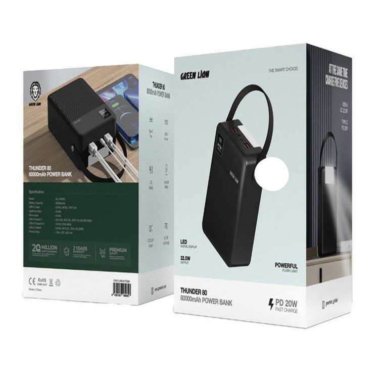 پورت USB-A نمایشگر LED باتری با عمر QC (شارژ سریع) PD (تحویل نیرو) خروجی DC 5V/3A شارژ سریع PD 20W