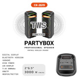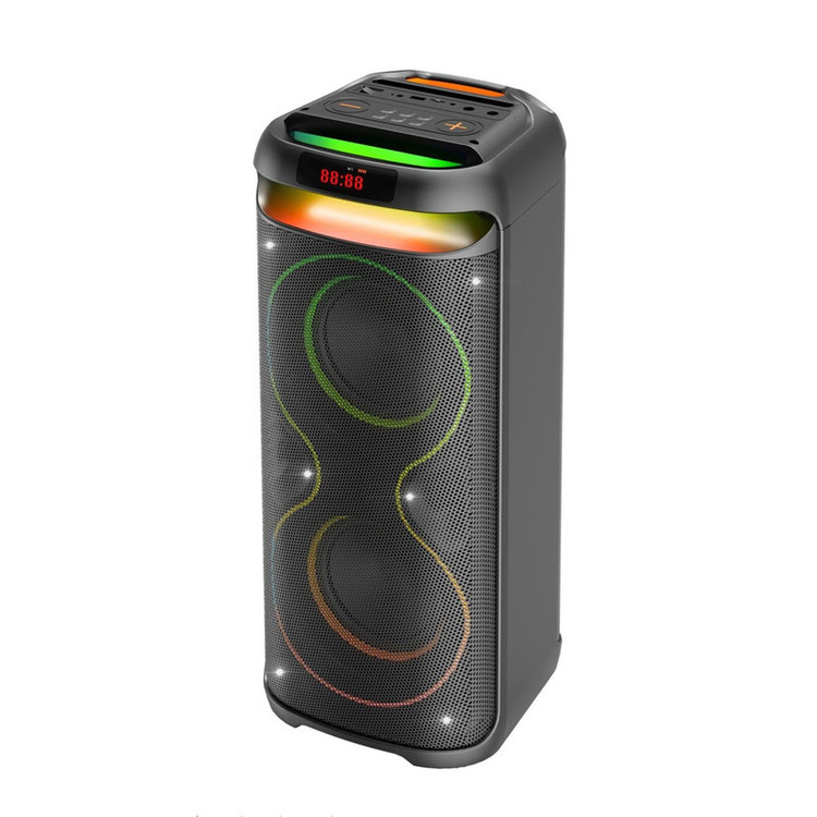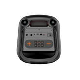 40 وات توان خروجی دارای باطری قوی 3000 میلی امپری دارای ریموت کنترل 2 عدد میکروفون قابل اتصال با AUX - USB- کارت حافظه بلوتوث دارای رقص نور جذاب چند حالته قابلیت اتصال همزمان به اسپیکرهای دیگر قابلیت تنظیم اکو بیس و ...