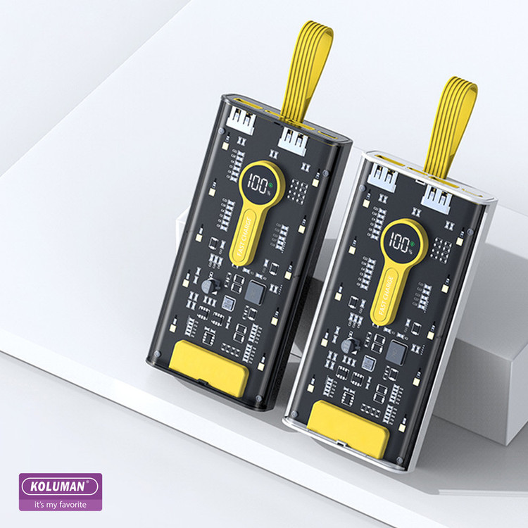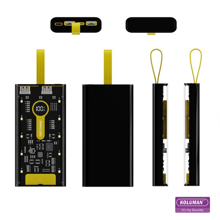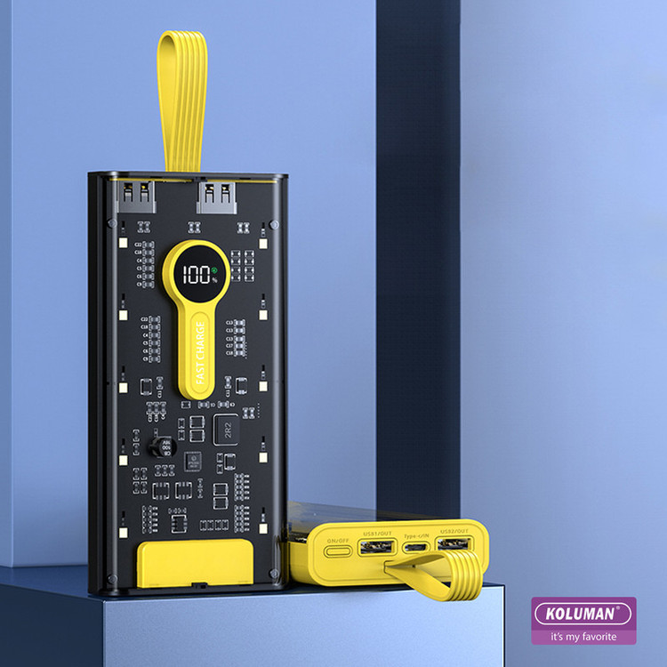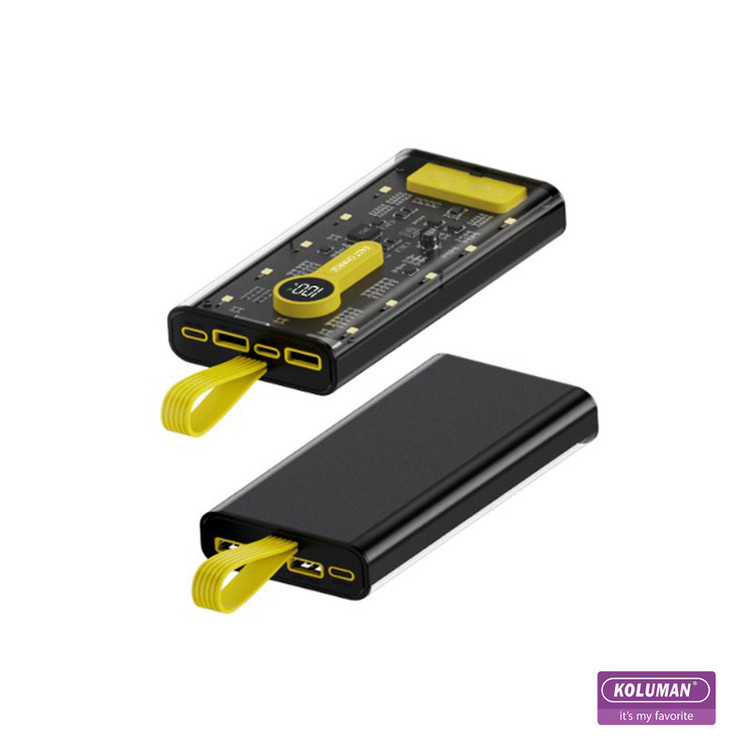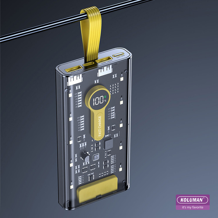 پاوربانک شیشه ای KP-031 تولید شرکت کلومن از یک باتری لیتیومی با ظرفیت 20000 میلی آمپر ساعت بهره میبرد. این پاوربانک 500 گرم وزن دارد . با داشتن این پاوربانک دیگر بابت تمامشدن شارژ باتری گوشی موبایل، تبلت، دوربین دیجیتال و لوازمی از این قبیل نگرانی نخواهید داشت؛ زیرا میتوانید در هر شرایطی بدون نیاز به پریز برق، باتری گوشی موبایل یا دیگر لوازم سازگار با این محصول را تنها با استفاده از یک کابل USB یا PD شارژ کنید. در ساخت این دستگاه از تکنولوژی شارژ سریع Quick Charge 3.0 استفاده شده است. پشتیبانی از شارژ فست به این معنی است که باتری دستگاه شما با کمک این پاوربانک سریعتر از شارژرهای معمولی شارژ خواهد شد. البته باید توجه داشته باشید که تکنولوژی شارژ سریع تنها با دستگاههای دارای استاندارد شارژ سریع و با کابل مناسب ممکن است و در دستگاههای معمولی امکان استفاده از این تکنولوژی وجود ندارد. شدت جریان خروجی در این شارژر همراه با توجه به ولتاژ خروجی آن، متفاوت است. زمانی که ولتاژ خروجی در این محصول 4.5 تا 5 ولت باشد، شدت جریان خروجی 3 تا 4.5 آمپر است. این در حالی است که اگر ولتاژ خروجی در این محصول 6 تا 9 ولت باشد، شدت جریان خروجی برابر با 2 آمپر خواهد بود. در حالت سوم و زمانی که ولتاژ خروجی 9 تا 12 ولت باشد، شدت جریان خروجی برابر با 1.5 آمپر است. در مورد شدت جریان ورودی این محصول نیز باید بدانید که اگر در حالت عادی ولتاژ ورودی در آن 5 ولت باشد، شدت جریان ورودی4.5 آمپر خواهد بود . در حالت شارژ سریع ولتاژ خروجی این دستگاه (5V ⎓4.5A) است. شما میتوانید وضعیت شارژ باتری KP-031 را از طریق صفحه نمایشگر LED روی بدنه به صورت درصدی مشاهده کنید. بدنهی این محصول شیشه ای میباشد و طراحی آن به دلیل ابعاد مناسب به راحتی قابل حمل میباشد.توان کلی این دستگاه تا 22.5 وات میباشد و این دستگاه مجهز به فناوری PD نیز میباشد .این پاوربانک را میتوانید با کابل تایپ سی شارژ کنید .همچنین نکته قابل توجه در این پاوربانک وجود چراغ قوه با سه شدت نور و نور چشمک زن (SOS) است