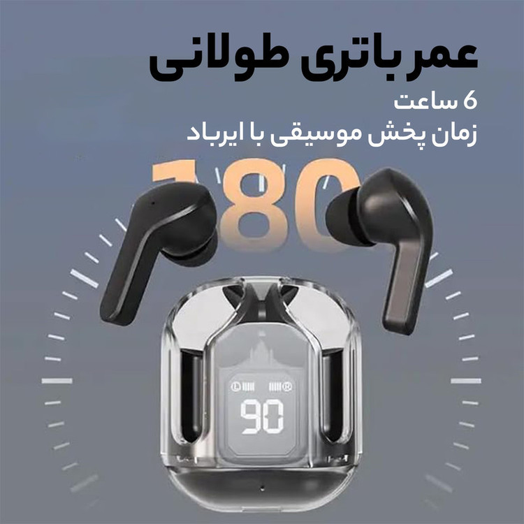 ظرفیت باتری: 300 میلی آمپر ساعت کیس و 30 میلی آمپر ساعت هر ایرباد / دارای فناوری حذف نویز ENC / کیفیت پخش موسیقی Hi-Fi ، صدای استریو / دارای صفحه نمایش LED برای نمایش میزان شارژ کیس و نمایش شارژ شدن ایربادها